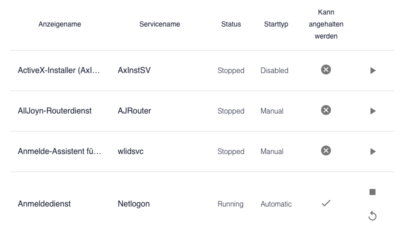 Die Dienste können hier auch gesteuert werden. (Start, Stopp, Neustart)