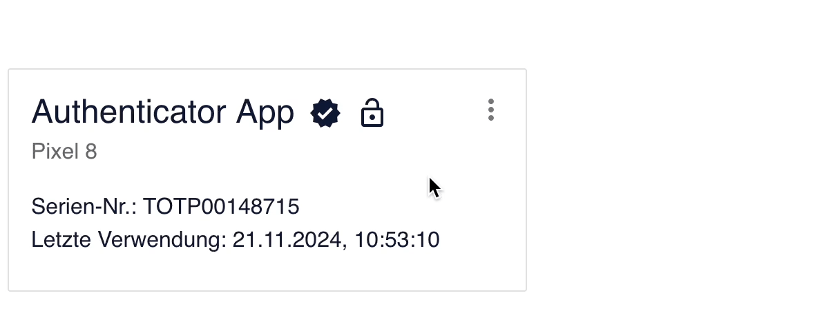 Eingerichtete Tokens werden mit Klick auf das Kontextmenü bearbeitet. Geht ein Token verloren oder Sie wechseln Ihr Handy, können Sie hier den Token zurücksetzen.