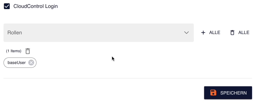 In diesem Bereich können einem Account Rollen zugewiesen werden. Diese Rollen steuern den Zugriff auf verschiedene Bereiche innerhalb von sqCloudControl.