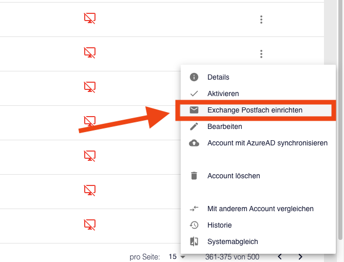 Gehen Sie dazu bei dem gewünschten Account in das drei Punkte Menü und wählen Sie Exchange Postfach einrichten aus.