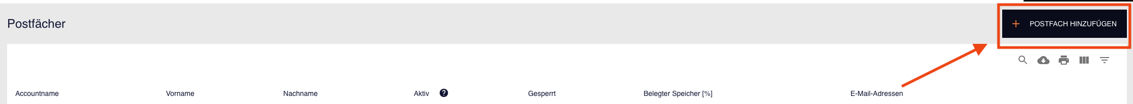 Für einen bestehenden Account können Sie ein Postfach unter Accounts einrichten.