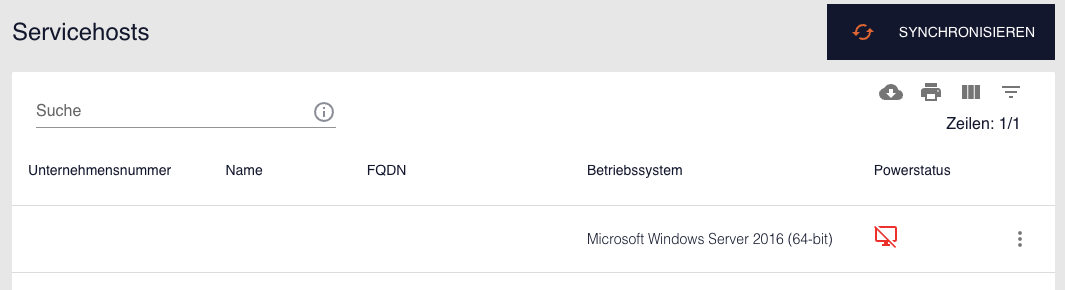 Die Liste der Servicehosts wird regelmäßig synchronisiert. Falls eine Änderung noch nicht in der Liste angezeigt wird, kann die Synchronisation mit dem "Synchronisieren" Knopf auch manuell ausgelöst werden. (Die Synchronisation kann einige Minuten dauern.)